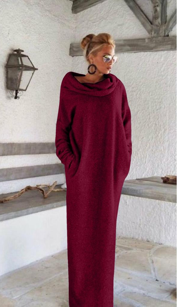 • • Un vestito lungo in lana calda e avvolgente, pensato per affrontare la stagione con stile.